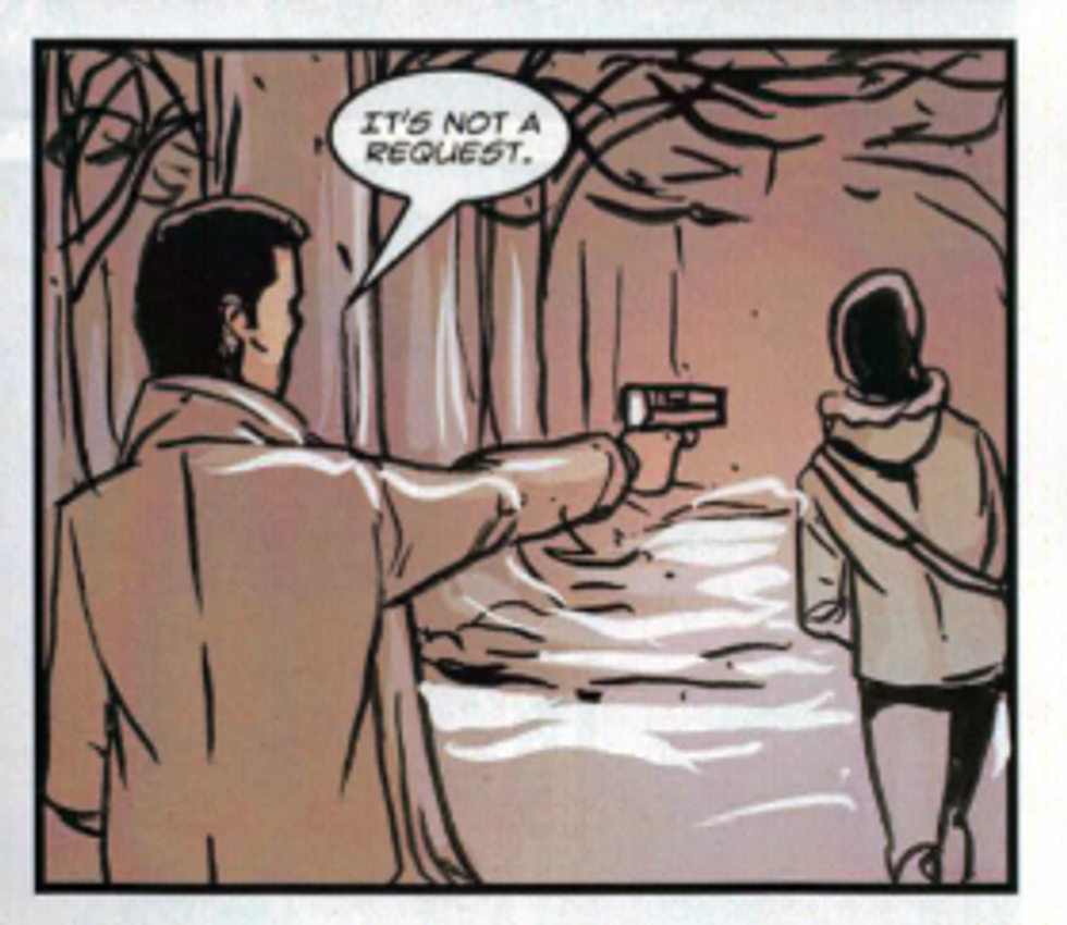 The next author(s) would be Alex deCampi, Carla Speed McNeil and Jenn Manley Lee, the creative team behind "No Mercy": The story of Princeton Freshman whose bus gets thrown off a highway and who are forced to fend for themselves against coyotes, a drug cartel and themselves. The story was hailed by Comic Book Resources "a modern day take on 'Lord of the Flies'," and was a take on the concept I preferred to Lord of the Flies.