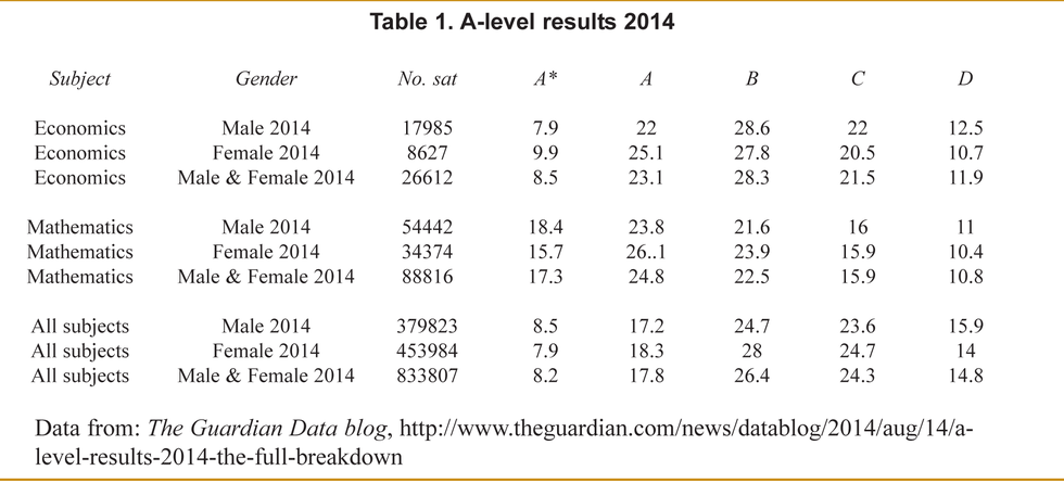 Another study done by a Harvard student at Adams, a liberal arts college, expresses that the gap between men and women in economics is also not shrinking. The article also cites the number of men and women who graduate with economics degrees from Adams and that from 2005 to 2012 the number of female economics majors was only 10% of the graduating class, but it rose to 33% in 2013. The numbers of male economics majors fluctuate as well, but normally not by 20% or more. The study also found that out of the incoming classes over the course of 2005 to 2013 that 10% of women choose economics as their primary major, while 20% of men did out of the 14.7% of students who choose economics as their primary degree. In the beginning the difference isn't as large, but once students add a secondary major, the difference becomes steeper. The study found that economics is a secondary major for 14% of students and that 17.6% of the students who declare econ as a second major are men while only an additional 10% of females declare it as a secondary degree. This study attributes the loss of female economics majors from those who originally registered their freshman fall semester as economics majors is the grades that females receive in Adam's course called Principles of Economics: The Portals to Economics. Men are more likely to receive A's or A-'s compared to women.