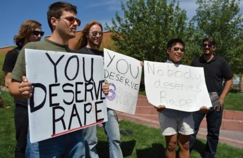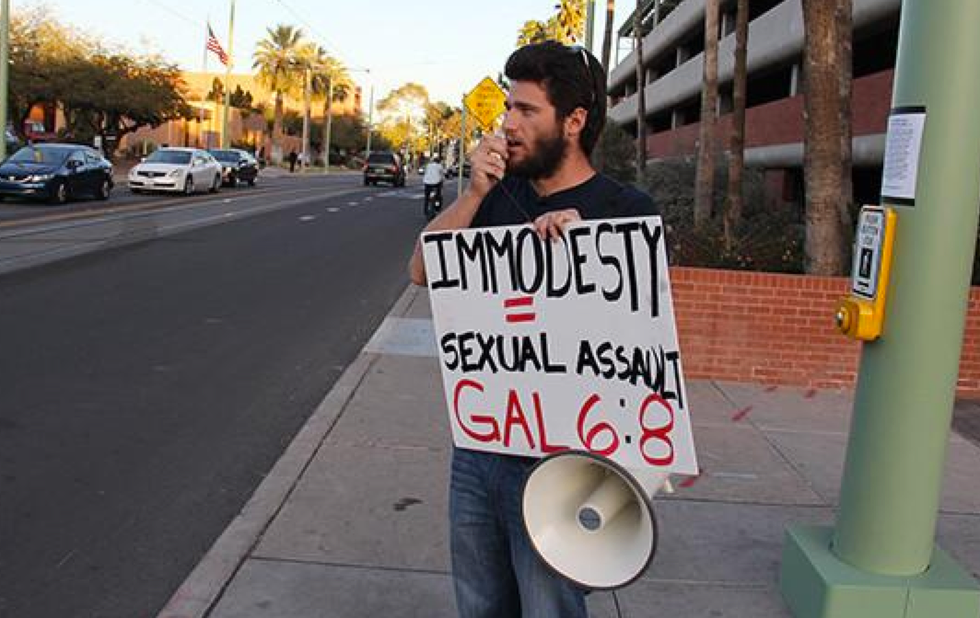 For those of you unaware, Tuesday, Feb. 16, University of Arizona students found Dean Saxton wearing a "Virgin Pride" shirt holding a large white sign explicitly saying "You Deserve Rape." As this poster clearly received a lot of attention, what more is Brother Dean holding back from saying?