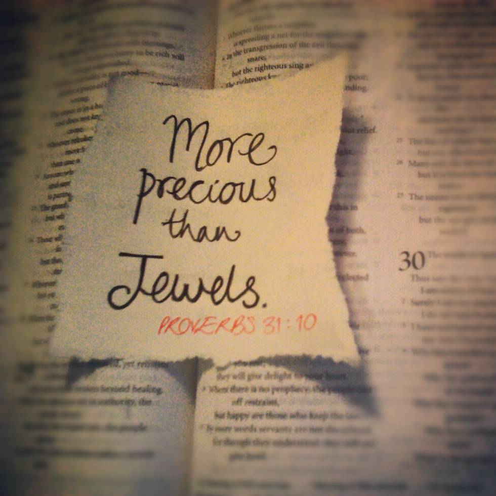 Proverbs 31:10 — “She is far more precious than jewels.”