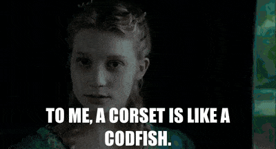 Right off the bat Alice doesn’t conform to her mother’s expectation of wearing a corset in a super clever way. Yep, in only the second scene this movie saying something. She brings up a good point. “Who’s to say what’s proper?” Anyone and no one, Alice. Wear what you want.