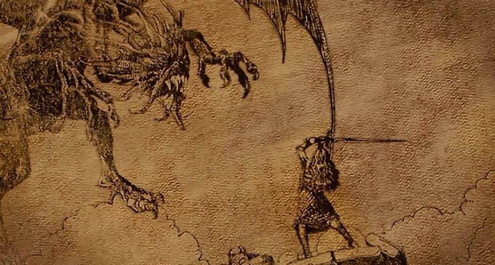 Can we talk about the knight slaying the dragon to save a princess, cliqué? Because she literally slayed a Jabberwocky, a very dragon-like creature, as a knight. No damsel in distress here.