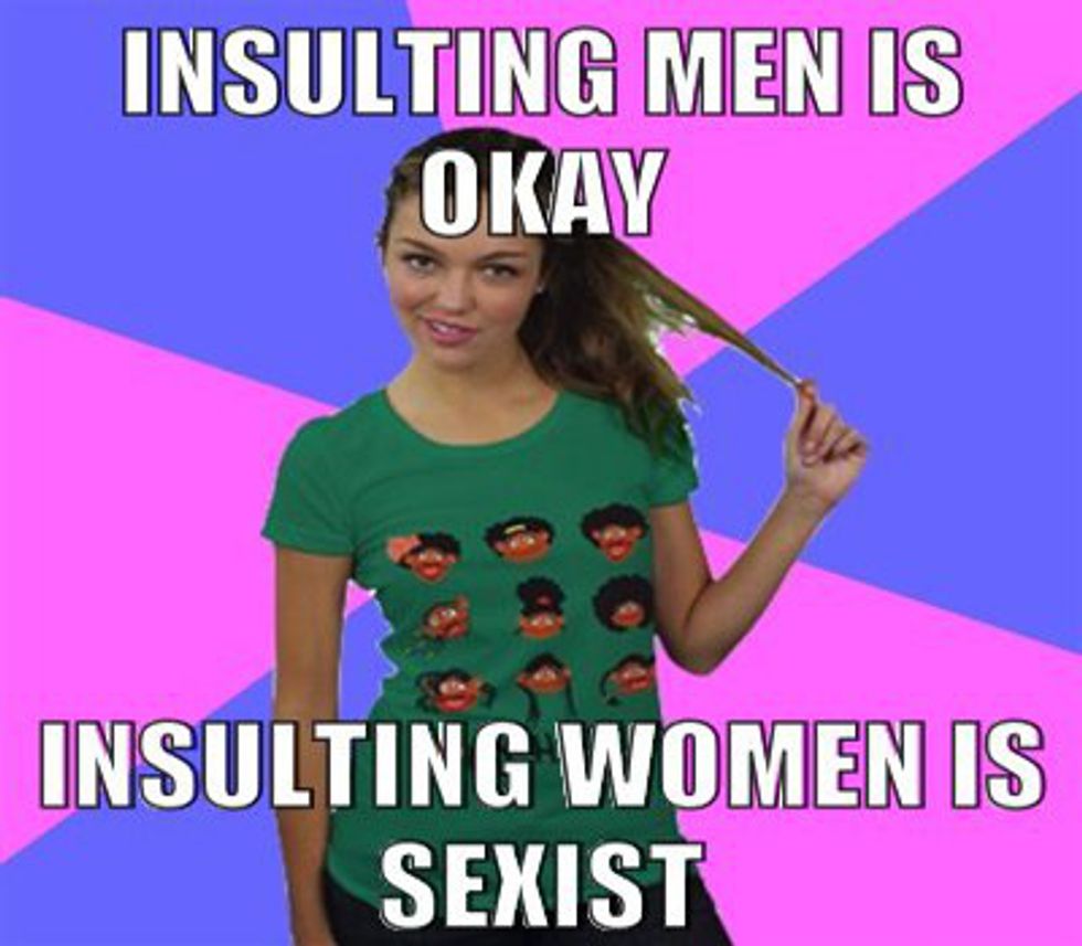 In a world where only one substantial presidential candidate is a woman, it's hard to argue that patriarchy isn't a thing in our country. But talk to any proud, self-appreciating man and he will willingly tell you that you're wrong. If you try to calmly argue with him and by doing so, admit that you are a feminist, then he will not-so-kindly tell you what exactly you believe. Things like how all you care about is stomping on men and promoting some imagined, ludicrous agenda that is actually the opposite of empowering, how you expect equal rights but still want free drinks at bars, and how men get raped, too. Don't believe me? Just do a quick google search on feminism memes.