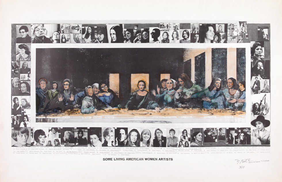 Using Leonardo da Vinci’s Last Supper as a platform to highlight how culture and religion have consistently written women out of history; this collage is probably one of the most iconic images of the 70s for the Feminist Art Movement. The women's heads collaged on includes American artists such as Nancy Graves and Georgia O'Keeffe.
