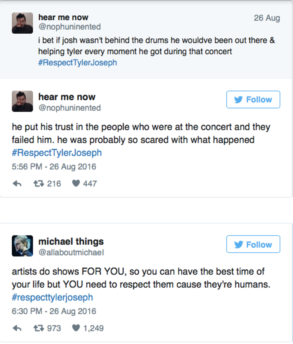 What's supposed to be an awesome event, got turned into someone almost getting badly hurt. After this occurred, #RespectTylerJoseph began to trend on twitter: