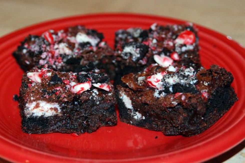 - If desired, crush 3-4 additional cookies finely and scatter on top of batter. You can also crush 1 candy-cane and sprinkle it on top; it will melt slightly but still be pretty and festive.