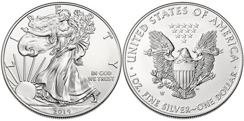 I'd recommend getting an "American Silver Eagle" (pictured below), these sell for about around $20 at cheapest.