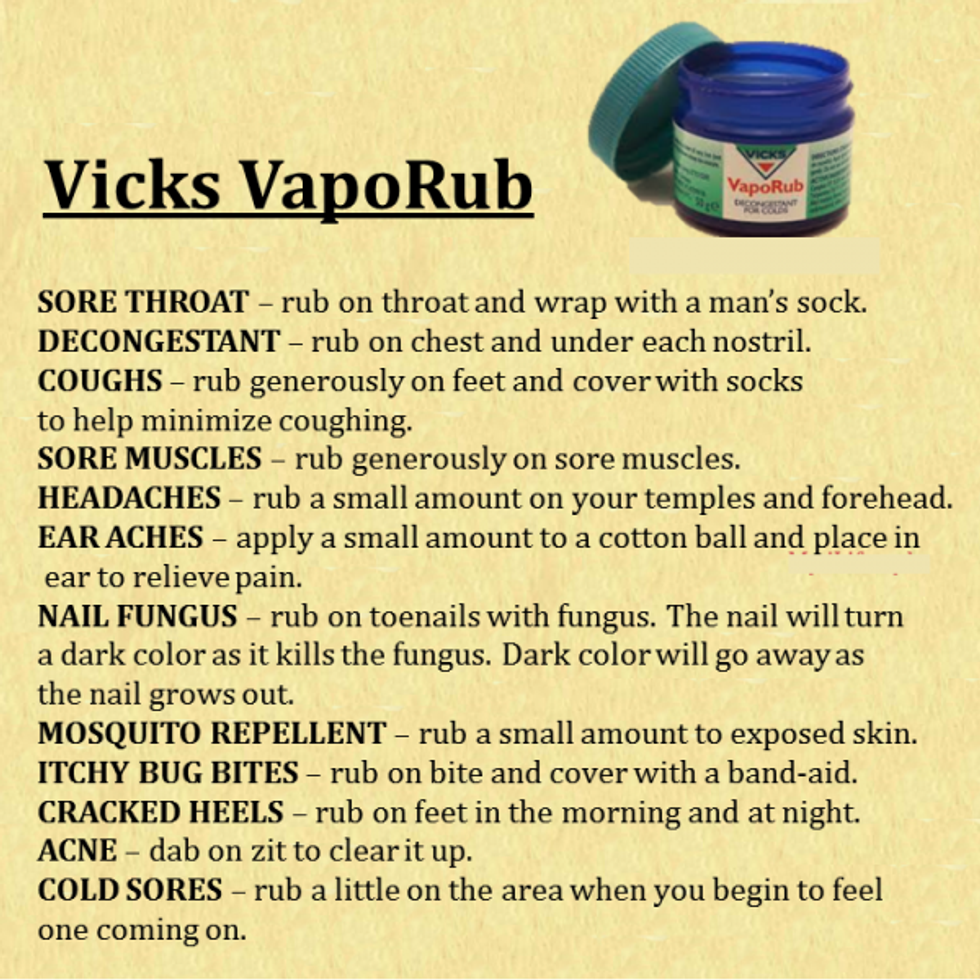Vick's VapoRub is known to be an ointment that helps alleviate common cold symptoms. But, besides curing a common cold; Vick's VapoRub has random uses that are beneficiary. Here are a few ways on how you can use Vick's VapoRub for your own well-being.