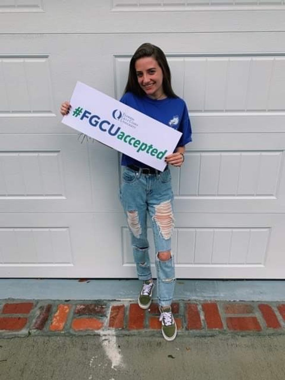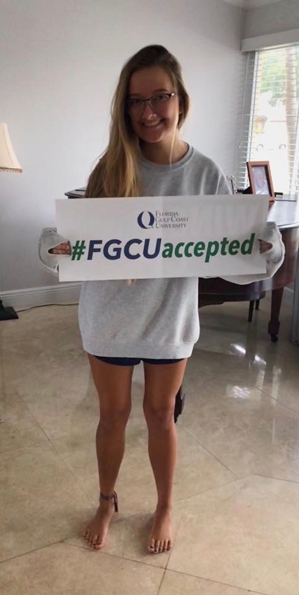 - Maddie Richter– "I chose FGCU because it is my dream school. When I would be in Fort Myers visiting my Grandpa, my parents would drive me through the campus. I always loved the school but I never thought I would commit to moving 18 hours away from where I grew up. I am so excited about my next step in life at FGCU!"