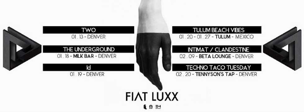As LuXxs' love for electronic music evolved, his passion behind true Techno found him and he completely submerged himself in creating the subtly profound sounds that make him Fiat LuXx today. It wasn't until "Later on, [when he found] Roger Sanchez and Joris Voorn were two individuals that always captured my attention within, House, Deep House and Techno." With both hard work, and dedication LuXx has risen to the top of the Denver electronic scene, allowing him to share the stage with one of his founding inspirations to the Techno scene, Roger Sanchez. "It was a dream come true to meet both in person and to have shared the stage with Roger," says LuXx. Fiat LuXx has since taken over some of the hottest clubs across Costa Rica, Colombia, Croatia, Spain, and America, making a name for himself and his company across the world.