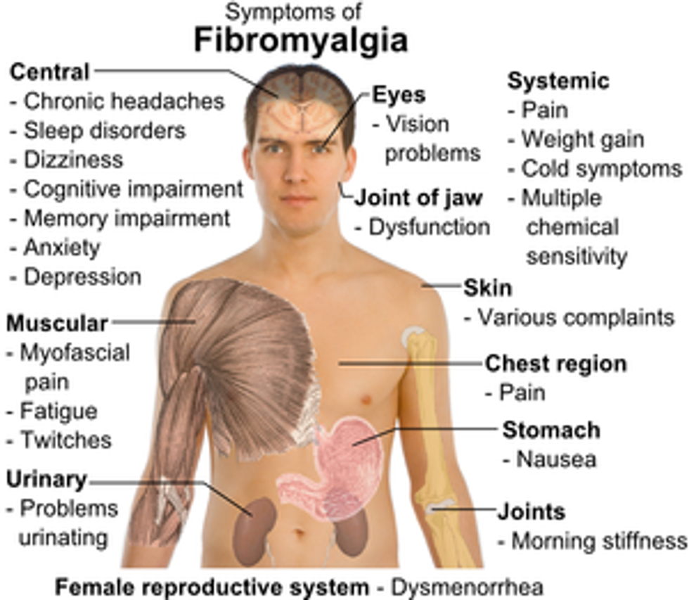 The definition of fibromyalgia is simply put as a chronic, common, and complex pain condition or disorder that essentially causes wide spread body pain or pain that spreads across the body from specific tender trigger points and only effects 2-4% of the world’s population. To put it in a way everyone will understand, it’s like you have worked out too hard and too much at once, were in a bad car accident, and have the flu all at one time. In fact, only two to four percent suffer with this condition in the world. While all symptoms are different for each individual suffering, this is essentially a common way to describe it. Not only is it an invisible illness, meaning that it can’t physically be seen by the eye, it feels as though you are bruised all over your body. Furthermore, touching someone with fibromyalgia might just get you a pretty nice black eye because the skin is so sensitive to touch that the pain is unbearably excruciating.Symptoms of fibromyalgia are not limited to a small amount of conditions. In fact, pain is not just simply pain for a fibromyalgia fighter. The pain is often referred to as shooting, throbbing, aching, muscular pain that varies in intensity. Along with severely varied levels of pain comes the problem with fatigue. When a person suffers with FM, fatigue is not your typical tired from work feeling. In fact, the fatigue we suffer with is so diverse and significant that it affects our lives with work, social status, and personal activities. The exhaustion is often tiring within itself and just the word alone makes me tired now. When individuals suffer with severe fibromyalgia, the sleep disturbance is altered significantly. In fact, when people with Stage 4 FM are sleeping, sometimes their brains will produce bursts of activity that causes them to wake up from a deep sleep. Finally, other symptoms that are common include irritable bowel syndrome, skin sensitivities, and varied headaches such as migraines, restless leg syndrome, dizziness, neurological complications, and much more. In all honesty, if you suffer with fibromyalgia, your symptoms are likely linked together.