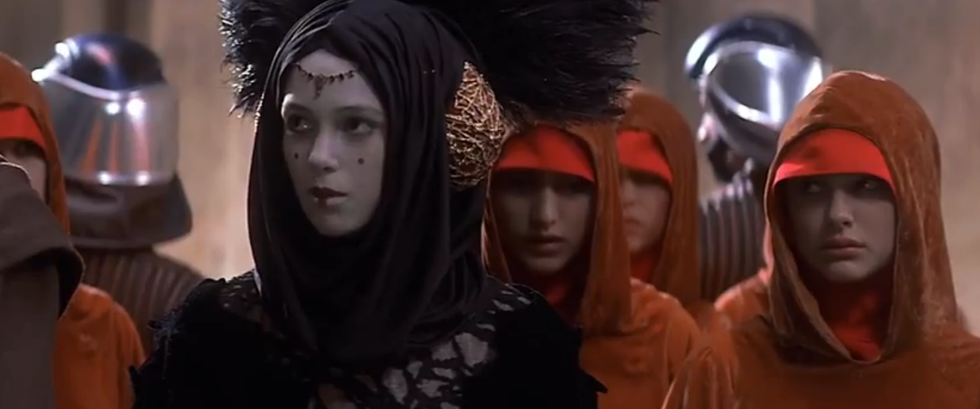 The real Queen comes out of her disguise as a handmaiden to humble herself before the Gungan leader, Boss Nass, when times get SUPERdesperate and the Naboo SUPERneed an army. It is very generous of Boss Nass to accept this plea.