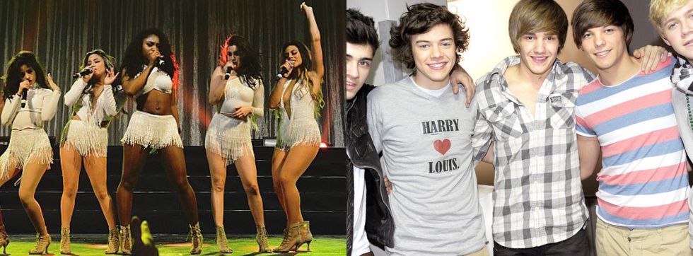 Both One Direction and Fifth Harmony, though from different countries, were formed on the X Factor. Both groups originally consisted of five members, and the wonderful Simon Cowell took both of them under his wing after they both ended up placing third in their respective seasons. Both groups achieved massive success, having a number of singles peak in the Top 100 on Billboard’s charts.