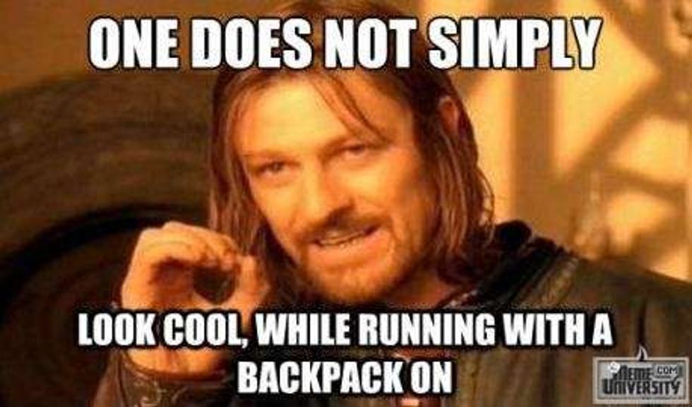 20. Sprinting to class with a backpack on.