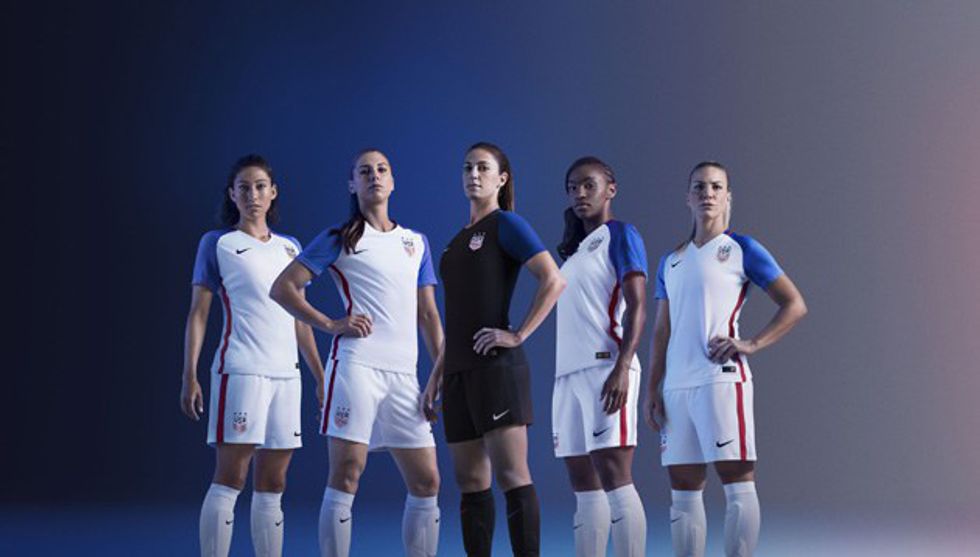 The shirts shown in the above photo are currently being sold online, and all proceeds will go directly to the National Women's Soccer League. That's right, the women have a professional league just like the men, and are paid significantly less than MLS athletes.