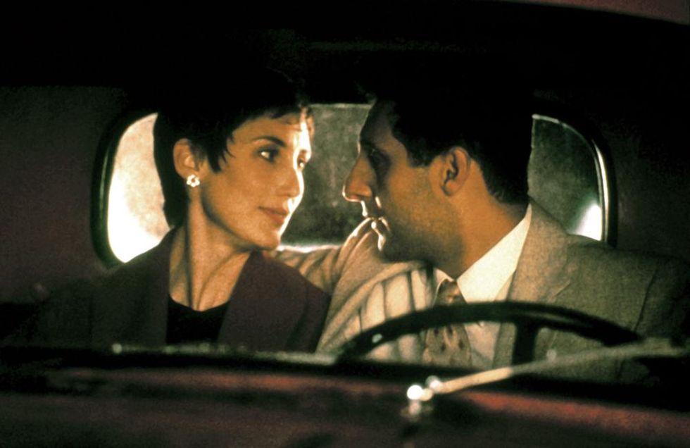 John Turturro also steers away from the typical portrayal of husband and wife relations in films about Italian-Americans. The ethnicity of Mac’s wife Alice is not stated. Italian or not, Alice does not fit the Mamma Mia archetype, nor does she fall into the Madonna/Whore dichotomy. For the most part, Mac and Alice have a stable marriage. Mac does not beat her. Also, her purpose in the narrative goes beyond cooking, cleaning, and raising children like Robert De Niro's wife in A Bronx Tale. She gives Mac some help with his business. When Mac tells Alice that he and his brothers are starting a construction company, she tells him that she will give money for land. Alice even assists Mac with his geometric mathematics during his architectural planning. She is also there for emotional support. To exemplify, after Vico and Bruno announce that they are quitting the business, there is a medium shot of Alice holding Mac as he is crying. Turturro not only defies stereotypes about the wives of Italian-Americans but also Italian-American men. He is not afraid to show the men crying. In addition, Turturro does not have Mac displace his anger about business onto Alice like Scorsese and Coppola do in their films. Despite Alice providing Mac with the money for land, he does not really use her business-related help beyond that. According to Turturro, “There were drafts where we made her stronger, but it came across that she knew too much. It was wrong for the time period” (Francke, 1993). Nonetheless, Alice serves as more than just a domestic prop like the wives in The Godfather and A Bronx Tale.