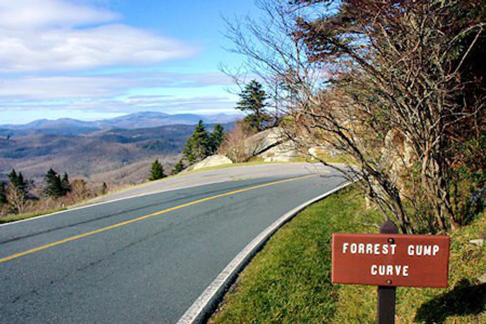 Although the majority of the film was shot in South Carolina and Georgia, there was a part of the movie where he runs in the hairpin bend on Grandfather Mountain. Up near Ashville North Carolina is when he begins to realize he has company following him. The bend now has a signpost marking "Forrest Gump Curve."