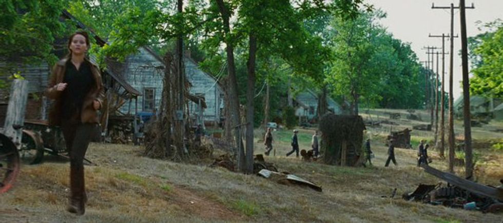 "The Hunger Games" was filmed entirely in North Carolina. The Henry River Mill Ghost Town was shot as District 12 in "The Hunger Games." This ghost town used to be a small community in the early 1900's with a three-story brick mill building that burned in 1977, a dam, and a company store.
