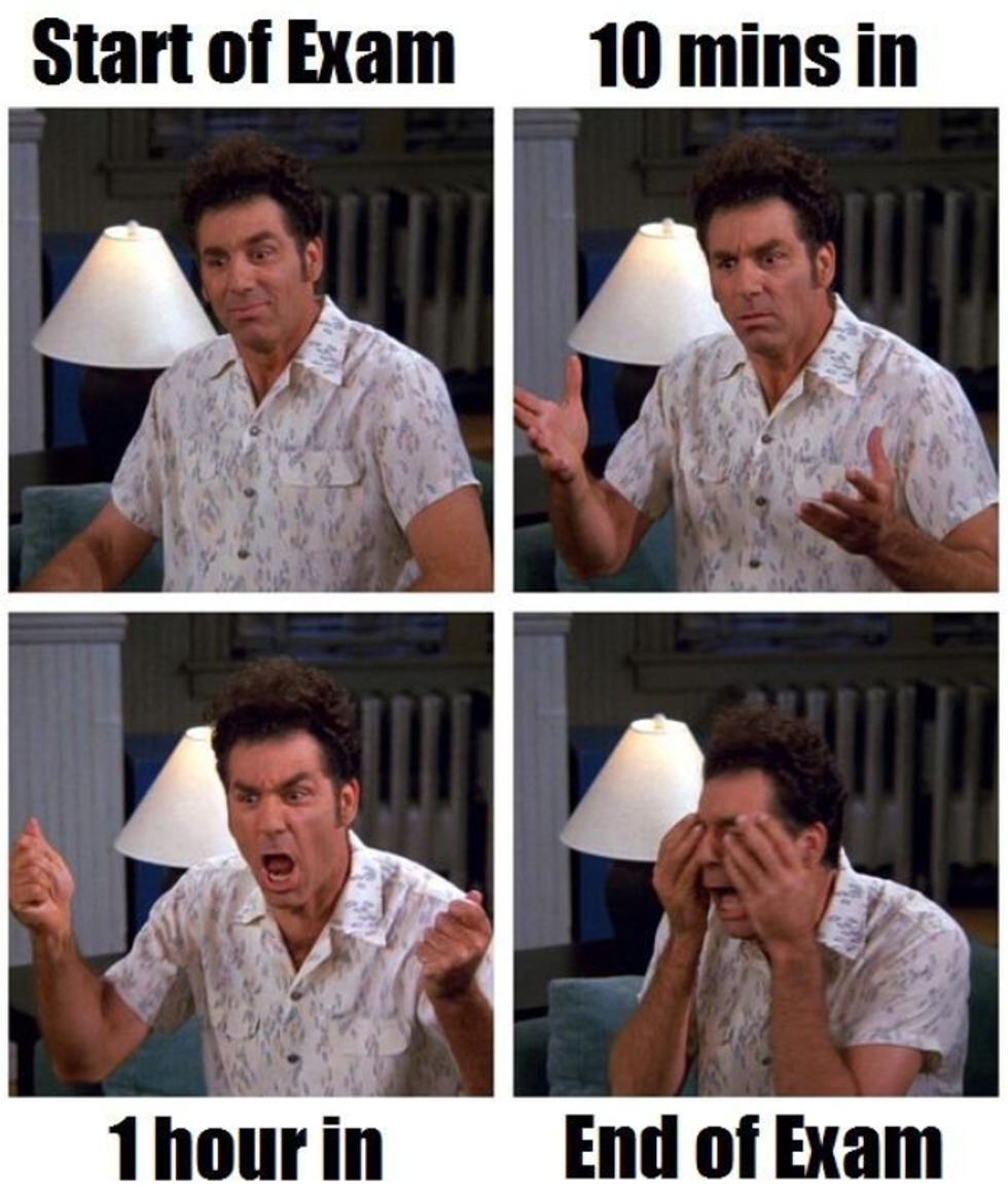 When you have no idea what you are doing and realize you spent the majority of the exam time on the first two questions.