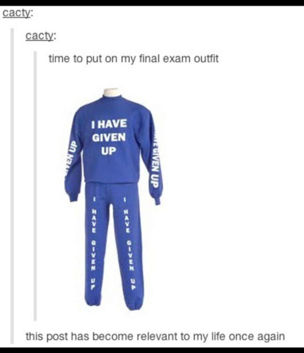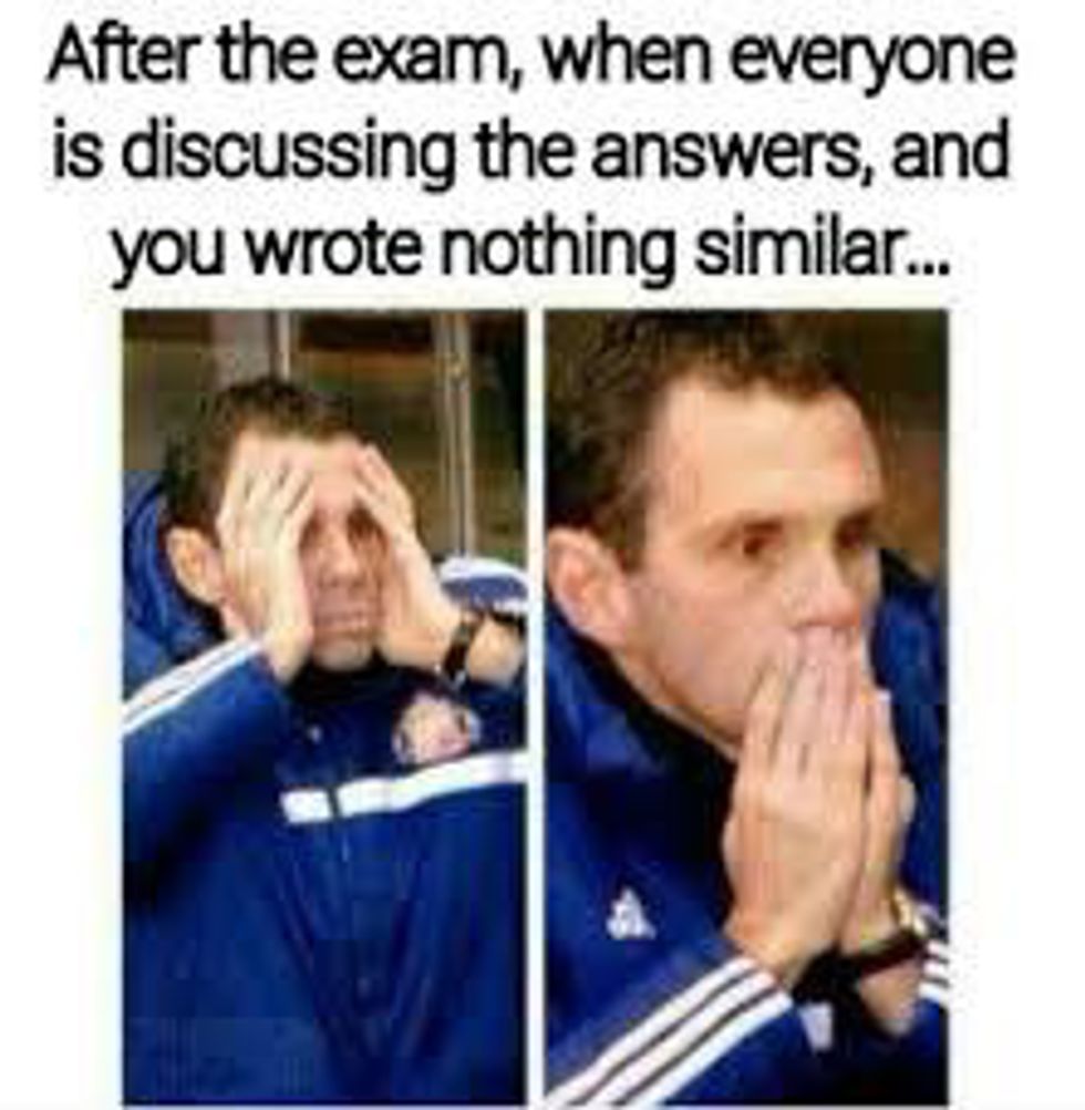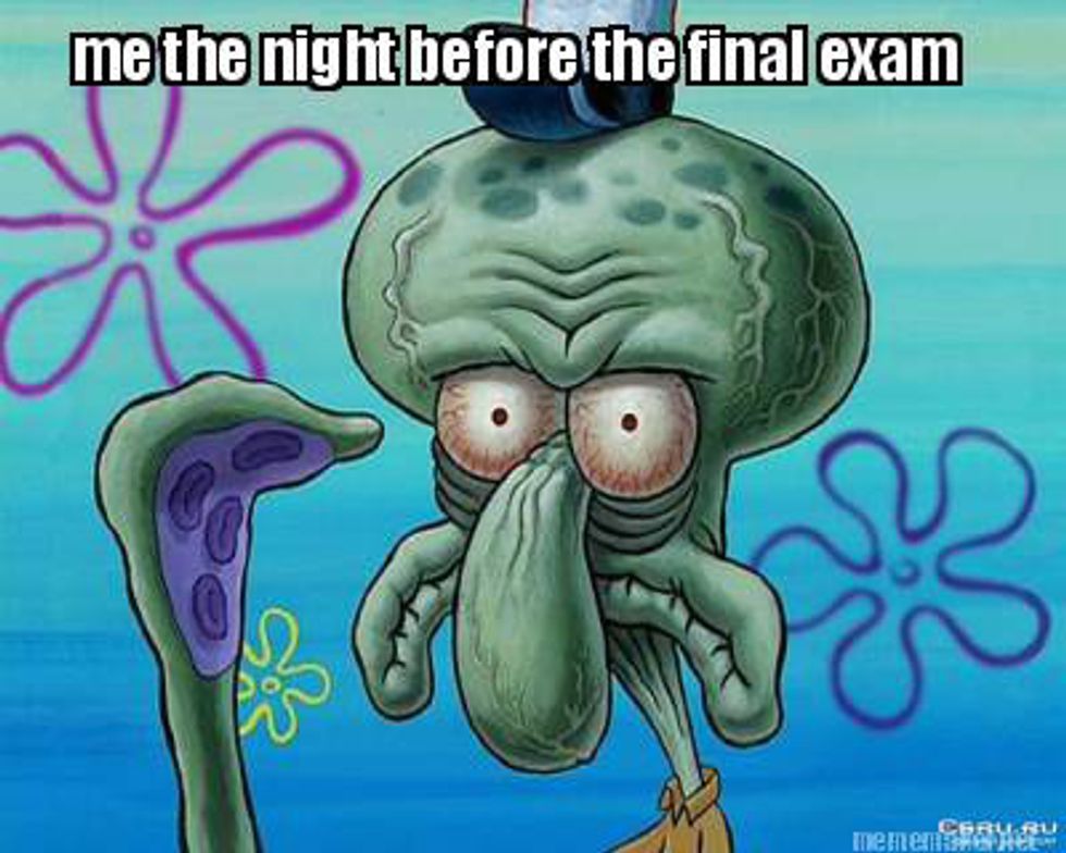 Final exams are upon us. In a way, it's a blessing. It means that this semester is almost over. We get to go home for the holidays and return fresh. However, final exams still suck. They are super stressful. You spend as much time calculating what grade you need to get on the exam as you do actually studying. So if finals have you down, here are some relatable final exam memes to pull you through.