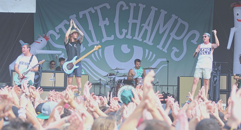 Albany, New York-based pop-punk band State Champs began in 2010, basing their quick-paced and emotive sound on the influence of masters of the genre like Fall Out Boy, the Story So Far, and New Found Glory. Based around singer Derek Discanio's wailing vocals, the band was filled out by guitarists Tyler Szalkowski and Tony Diaz and bassist William Goodermote; they were eventually joined by drummer Evan Ambrosio.