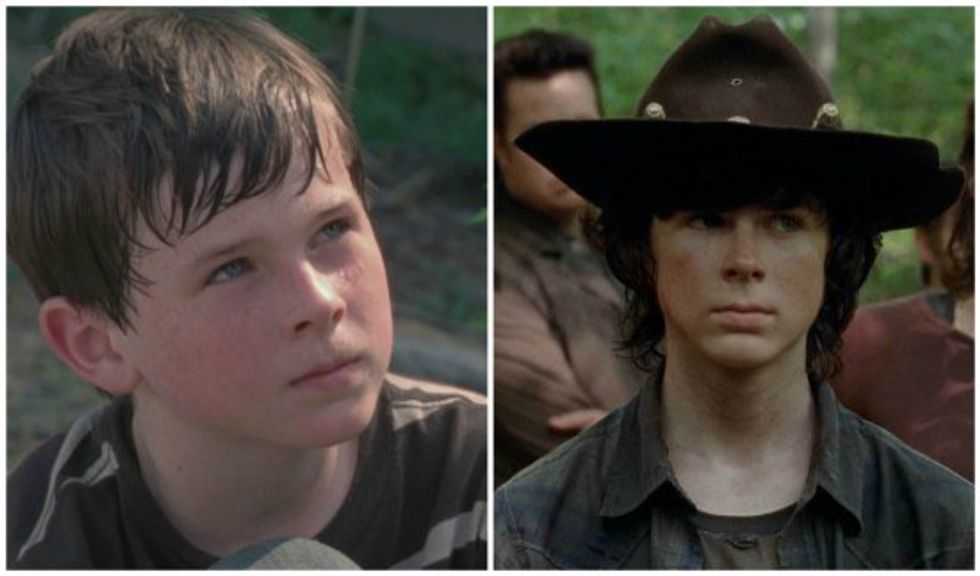 We've watched Grimes' son (Chandler Riggs' Carl) grow from a little boy to an awkward teen.