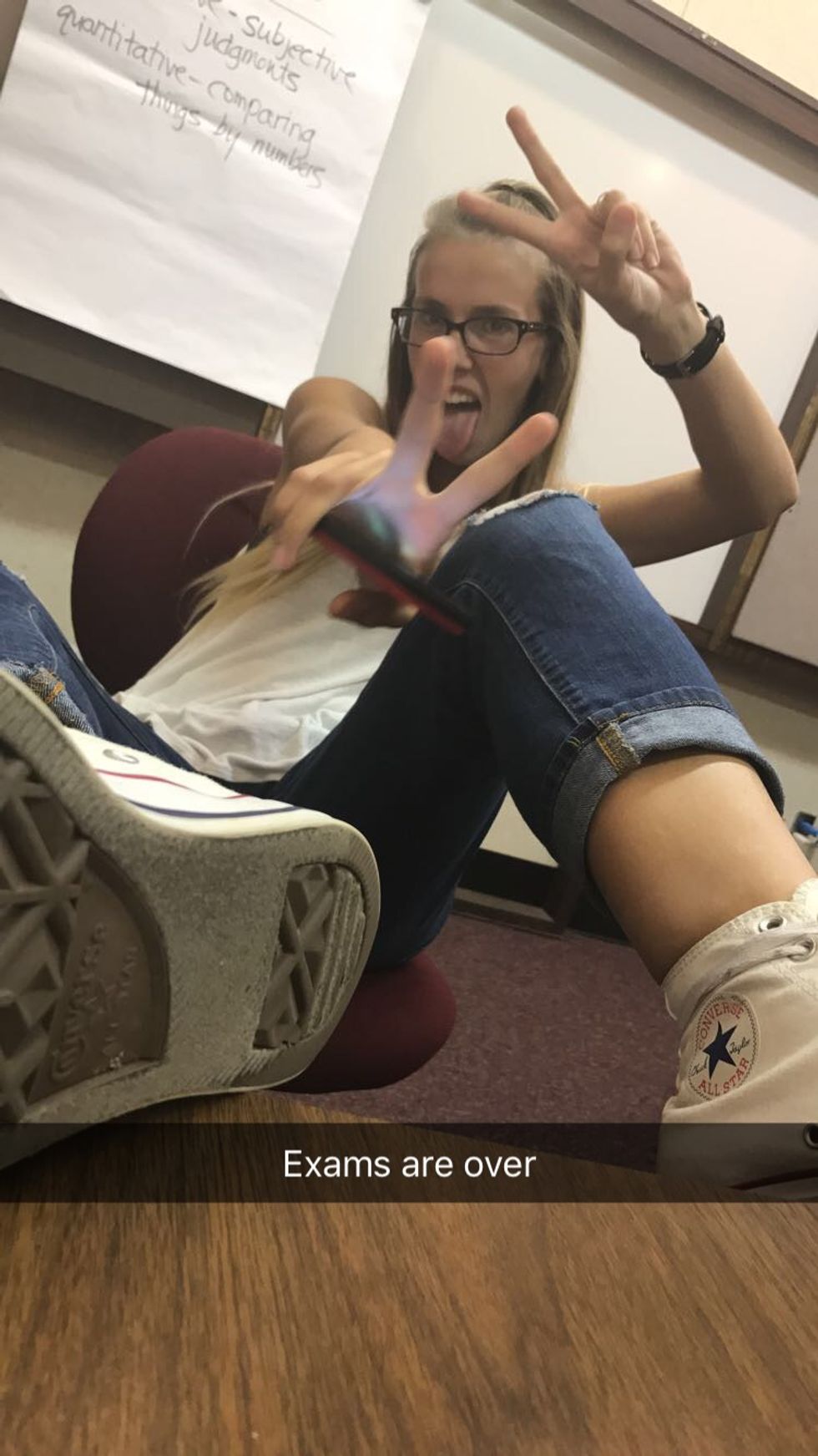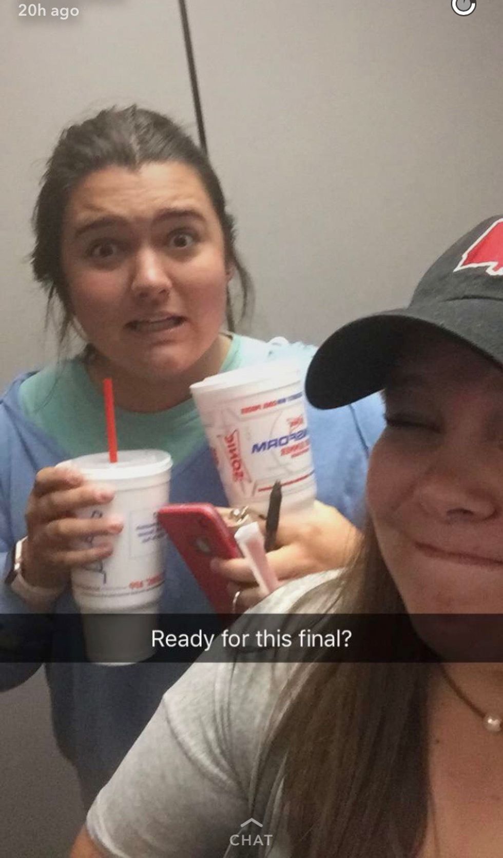 With finals in full force on college campuses across the U.S., students have been trying to find a way to cope with the madness. Some of us ... well... most of us, use Snapchat to find comfort in the fact that everyone else is, indeed, "right there with ya."