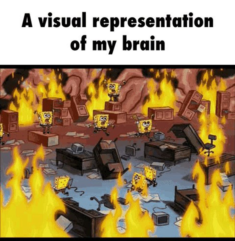 Its that time of year again; christmas music is playing, lights are strung everywhere, holiday cheer all over, and the dreaded finals... for everyone else this means wrapping presents and decorating; but, for college students this means studying and stress. Finals consist of stress, studying, procrastination, and work upon work. However, this unfortunate time can be described by non other than spongebob squarepants.