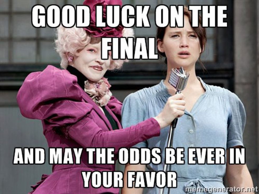 What meme series is complete without a little Hunger Games? The exam is probably the single worst final in existence. The thought of them makes me sick 🤢. We probably all look like Katniss in this picture when we face our exams. This is basically when we decide the world 🌎 would be better off exploding 💣 than to have to complete this exam.