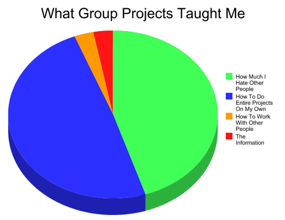 But really though, there is not really much else to say because the graph covers it all. This year I had a partner (kill me now) and a project that should have take roughly 6-8 hours to work on. However, doing this project almost completely solo took 12 🕛 hours.
