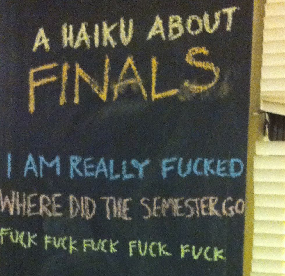 As many of us continue to digest our Thanksgiving feasts, the wretched reality is that finals are quickly creeping around the corner. So while many of you may still be recovering from a food coma, I have taken the liberty of helping the universe by giving final exam tips to all of the future entrepreneurs, doctors, nurses, businessmen, and much more.
