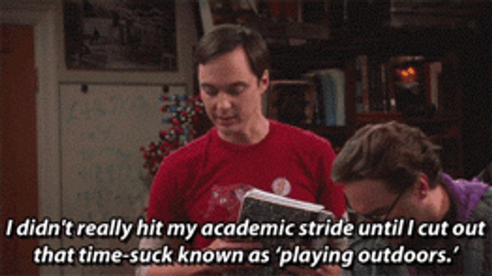 Maybe Sheldon can teach us a lesson about hitting our academic strides rather than playing outside.