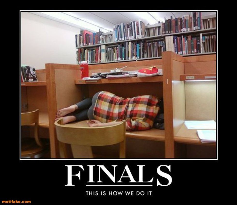 Finals week is all about studying hard, and accepting that it's okay to not know everything. In addition to studying until we're blue in the face and we speak in PowerPoint, comes our ability to ignore the need to study and rather scroll through Facebook and/or Pinterest and laugh at all the memes that surround finals week. So, for your viewing pleasure, here is finals week told in memes. Enjoy!