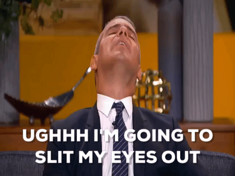 Andy Cohen is hands down the best host ever. He can be found on Bravo on his late night talk show "Watch What Happens Live!" where he really does have the 411. Andy is also the executive producer of the "Real Housewives" franchise so he knows drama. Andy Cohen is known for his scandalous questions and wild interviews with the cast of Bravo and other celebs, he's even taken a selfie with Kim K's butt. There are so many gifs that can relate everyone to Andy during finals week.