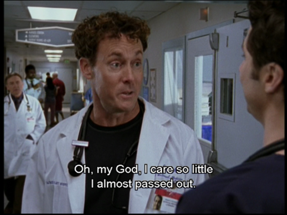 As the air gets warmer, the days get longer, and the semester winds to a close, it can only mean one thing: finals are upon us. While there may not seem to be many similarities between a California hospital and finals week, the cast of "Scrubs" proves otherwise. From a lack of sleep to caffeine to low motivation, here is finals week, as told by "Scrubs."