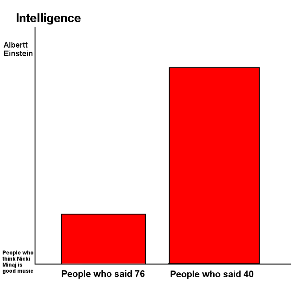 To which the typical answer was a resounding "76," which most people would assume is correct. What these people didn't know, however, is that Albert's age has a direct, multiplicative relation to Jimmy's, meaning that when Jimmy is 80, Albert will be 40, since he ages at half the rate that Jimmy does. The fact that almost none of these people, none of these college students were able to answer this very simple riddle correctly is, to be a quiet Frank, astounding to me. Among these very clearly mentally challenged students, I also found people who tended to major in sociology and unironically listened to Gucci Gang. Shocking, to say the least.