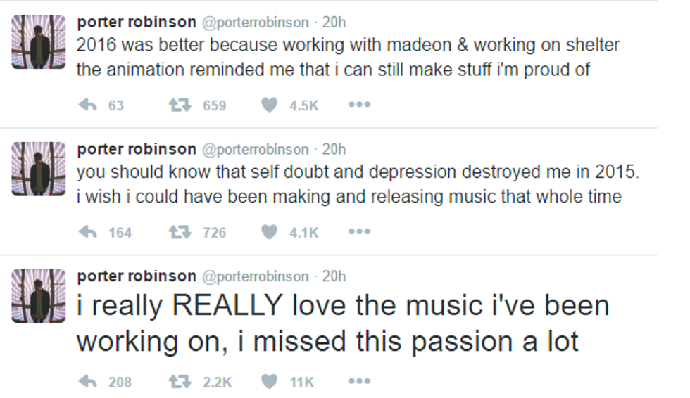 Porter Robinson and Madeon's "Shelter" has been released since August 11, 2016, and the instinct to hit the skip button still hasn't hit me 8 months later. With the closing of Porter Robinson and Madeon's Shelter Live Tour at Weekend 2 of Coachella, I feel the need to address my obsession with this masterpiece. Just as a heads up, I could never find the right way to tell you what this song really means to me, but it won't be a long way forward, I promise.