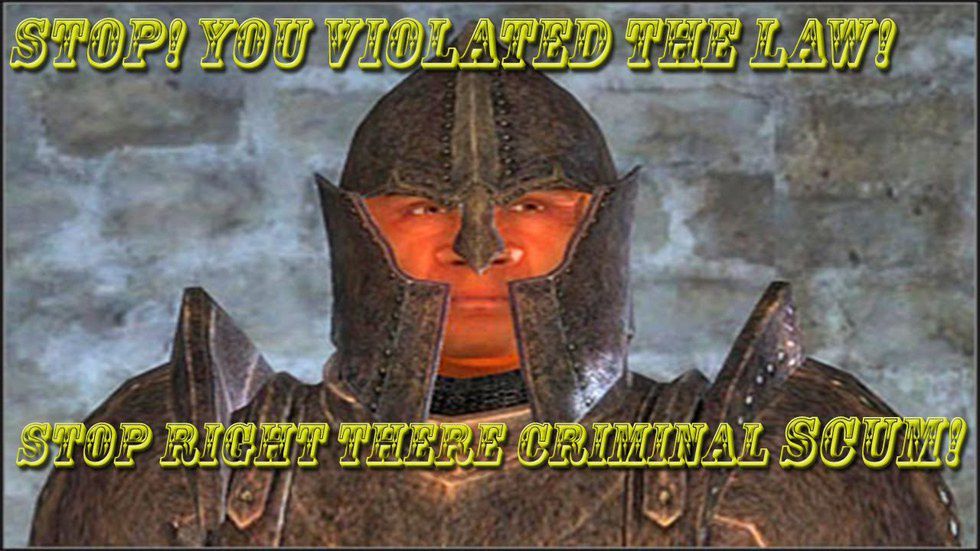 Justice/Morality Systems are another, albeit more general, example of this lesson: if you commit a crime and are caught, you are chased by guards and arrested/killed, depending on the severity of the crime. These systems are featured in the "Assassin's Creed" games, "Elder Scrolls", "Grand Theft Auto", "Fallout" and many more. Some are better than others, but the best example I can think of is another Elder Scrolls game, Oblivion. In that game, the more good or bad things you do, the more fame or infamy you gain as a character. The more you help people, strike down evil, and complete quests for the “good” factions, some evil characters will not talk to you, and some quests are locked. The opposite happens when you choose an evil path, and after a point, you are attacked by guards on sight.