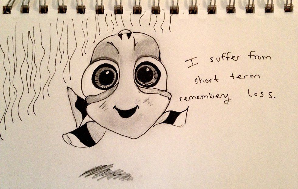 Short term memory loss can be used to describe a few instances. Often it's used to describe when a person forgets things that recently happened. As it escalates to serious memory loss, signs go from walking into a room and forgetting what you're doing there to getting lost close to home and struggling with every day tasks. This can happen for a few reasons. A person can be like Dory and, thanks to the sequel, we know her back story with short term memory loss. Since it's a process in the brain, short term memory loss can just occur because it's how that particular brain functions. It can also occur as a result of accidents or medical conditions, such as Anxiety Disorders and Fibromyalgia. As a person who has both of those in particular, I can say that losing your train of thought can be extremely frustrating, and existing in a "fibro fog" can be difficult to describe to others, however, I personally can not compare it to those who suffer from serious memory loss. Sometimes, short term memory loss can be the first sign of Alzheimer's.