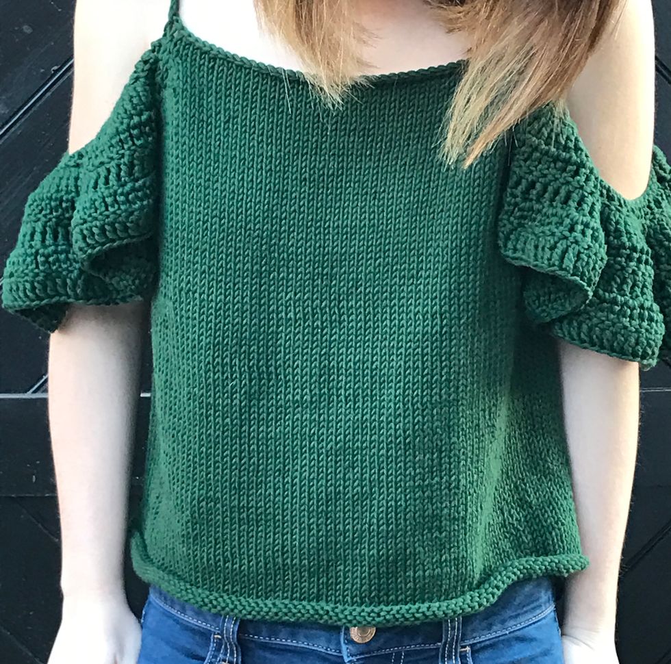 One of my favorite parts about knitting is that when I wear my handknit stuff in public, I always get the opportunity to say that I made it myself. It always seems to surprise people when I say that I made a cotton top with ruffle sleeves, a cabled hat with a fur pom, or even my boot toppers for my Wellies.