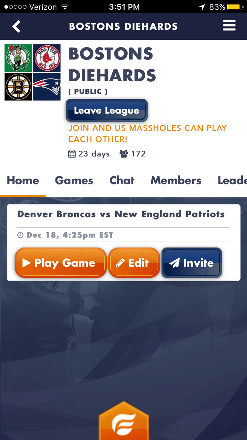 Quite a few people have already signed up, but the more people the better. If this sounds interesting to you then you should definitely try it out. To me, it is a must-have for all sports fans. So make this the next big thing! Go download FireFan, use my referral code when you sign up (BDiehards), join my league (Bostons Diehards) and start playing with me and other sports fans today!