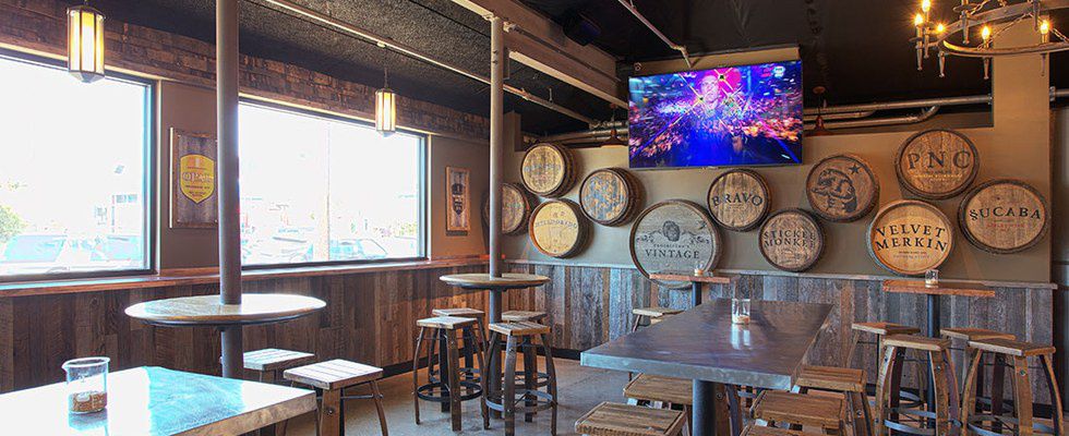 It is in a prime location and features two separate buildings with a brewing space, gift shop, and the taproom. The space itself is open and features the craft beer aesthetic. Oak barrel tops from their barrel aged series decorate the walls.