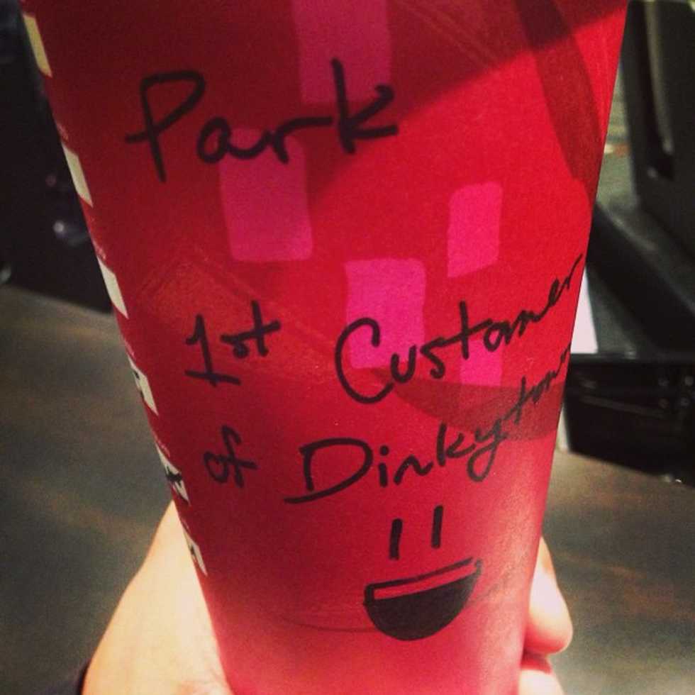 Keenan, the recently promoted manager for the new store, kindly wrote my name on the venti soy mocha, and followed this by scrawling the most rewarding title next to it: "The First Customer of Dinkytown Starbucks." After I finished the first cup of Dinkytown Starbucks, I made sure to wash it gently and set aside for careful preservation in my apartment.