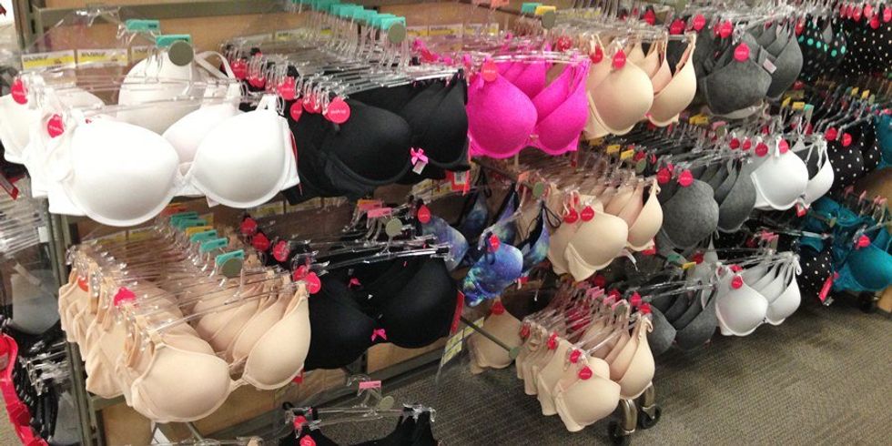 I got my first real, non-training bra in fifth grade. I looked through the bras with my mom and picked out a size and color (I opted for nude, since it works under everything). I remember feeling awkward carrying a bra around in my hand in JCPenney, and I hoped I wouldn't see anybody from school. It was especially nerve-wracking that I could potentially see a boy from school. Because, to me, nothing would have been more tragic than a cute boy seeing me buy a bra. And EVERYONE shopped at JCPenney, right? As my mom looked around the store, I remember wishing we had a shopping cart or bag of some sort so I could conceal my merchandise.