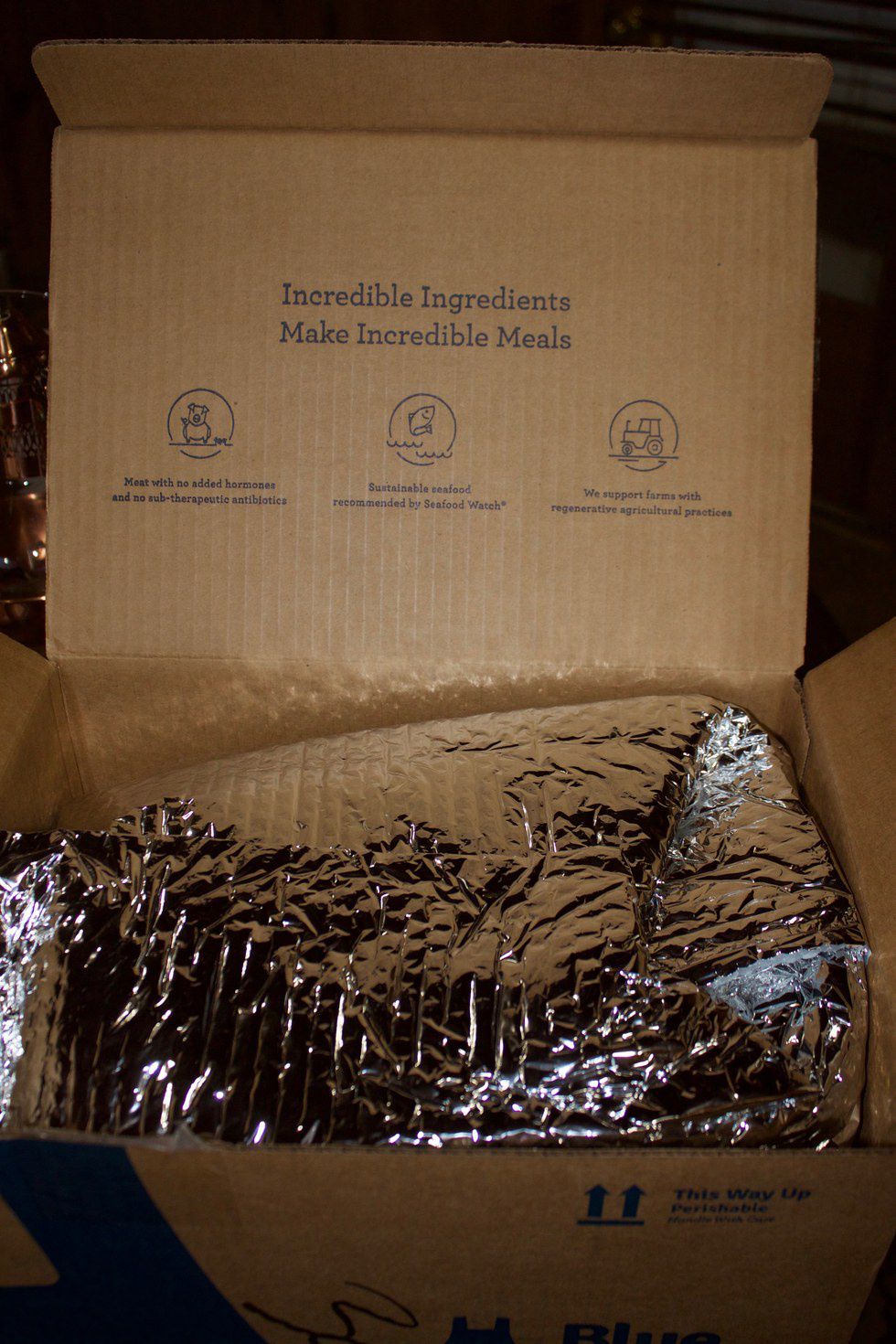 I chose Blue Apron because it was $59 a week for 6 meals (3 dinners=6 portions/meals), and my first box was TOTALLY free because a friend had a referral code! I filled out the survey specifying my dietary needs and preferences and chose to have a menu that could feed 1-2 people, had a low sugar content, and excluded shellfish.