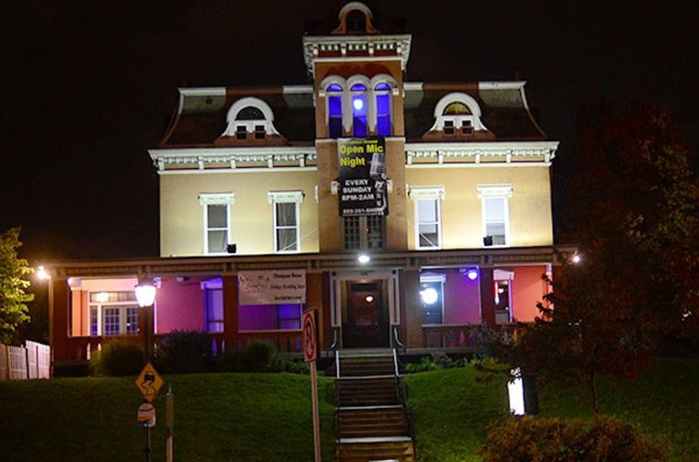 Fast forward to the night of the concert. At this point I was still expecting to hear an alternative band or something along those lines. As we entered the Thompson House, which looks like a haunted house straight out of a horror film, I soon realized that he was not kidding with me the week before. We made our way down the stairs to where to stage was to find maybe 30-ish people standing around, drinking, having a good time while a band set up their equipment.