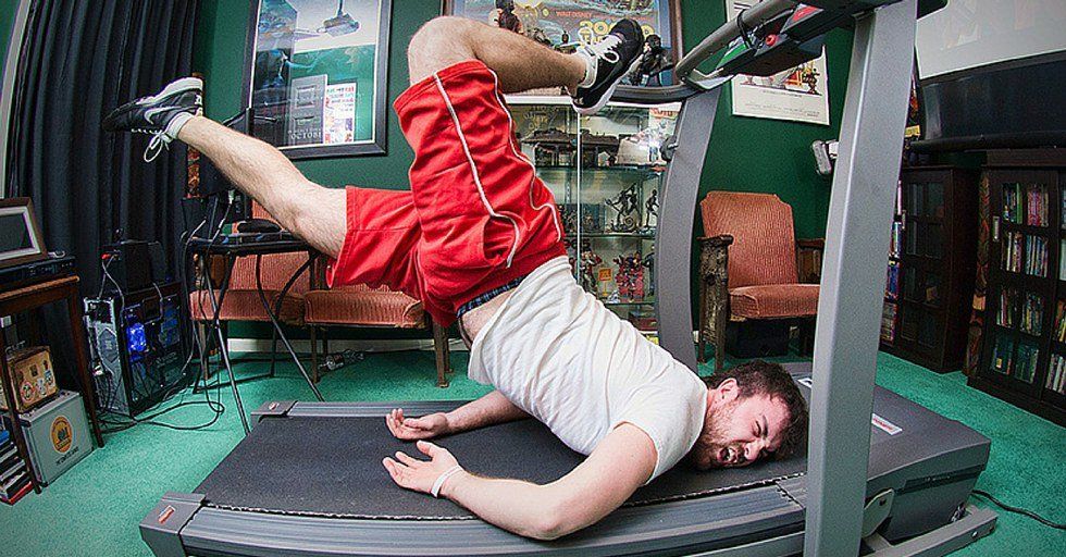 But despite what your legs say, you keep pressing until you do a whopping 10. Wow, aren’t you the upcoming Hasselhoff. Giving yourself a little break, you bust out 10 more. Then 10 more. Until you can’t possibly do another one. Limping slightly when you move on to the next machine, still deciding to stick with legs. The treadmill looks like an excellent idea. Putting in your earphones (which, by the way, you really need to clean -- look at that earwax) you start to blast some dubstep-y running music, the perfect motivation. Your legs still ache (cue "Agony" from "Into the Woods") but deciding to fight through the pain, you begin at a very mellow, easy pace. This isn’t so hard, and you start to increase and increase the speed.