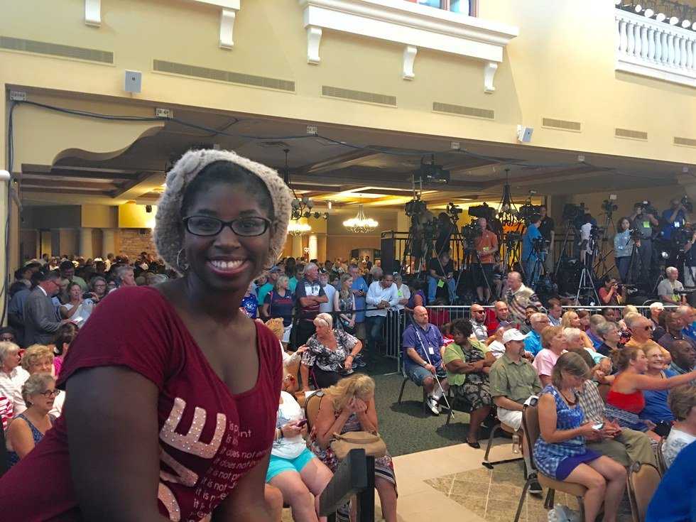 Initially, I was really nervous because I was going to my first campaign event alone. Also, before crossing the street from Daytona State College to the Mori Hosseini College of Hospitality Management, a truck with huge flags that spelled "Trump" rode by campaigning for the Republican nominee, Donald Trump. Once in line to enter the event, it was nice listening to everyone's conversations about their thoughts and opinions on the upcoming elections. Despite how hot it was outside, everyone was very respectful.