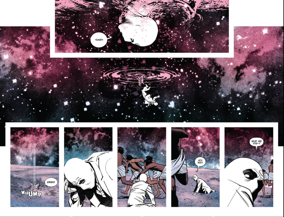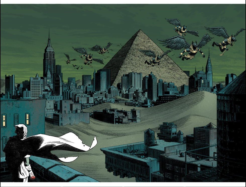 That is, until April, 2016. Jeff Lemire became the new writer for Moon Knight. This series took on a new look at Marc's mental state, and provided some interesting visuals, panel layouts, and an engaging story.