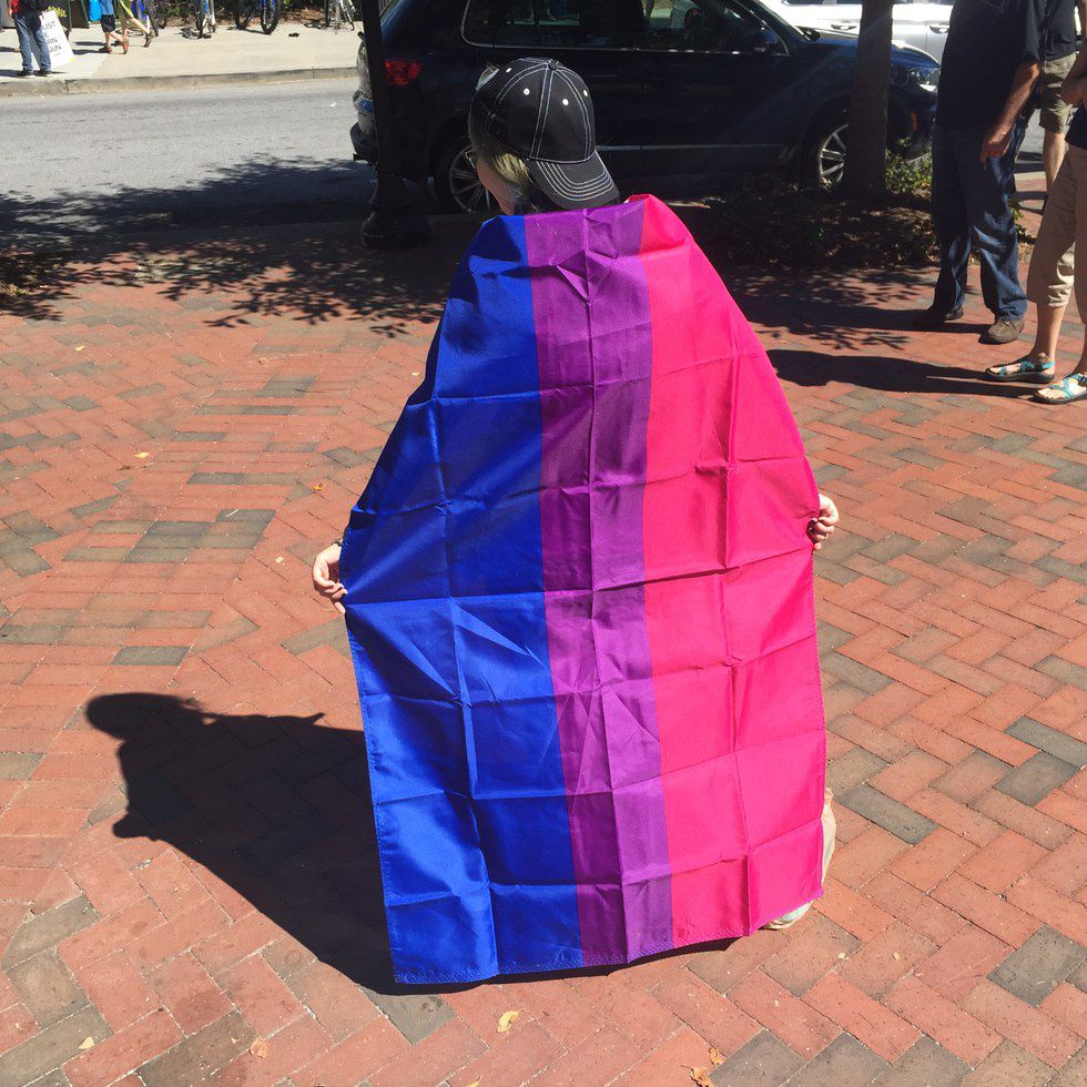 I continued to circle around the pride festival and there I saw it. The bisexual pride flag. I went up to the booth and bought the flag. The man working there was so nice and helped me tie it around my neck as a cape. “So, do you want to be a semi-bi or a super-bi?” The man at the booth asked me.